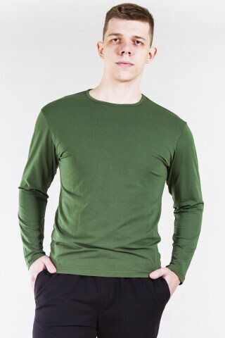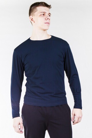 Футболка мужская прямого свободного силуэта с длинным рукавом. Горловина модели округлой формы, отделана бейкой.