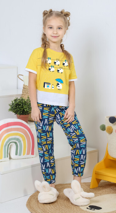 арт.39с КОСТЮМ ДЛЯ ДЕВОЧКИ 100% хлопок состоящий из джемпера и брюк. Джемпер со спущенной линией плеч, забавным принтом, контрастными вставками и разноуровневой линией низа. Брюки с боковыми карманами, на притачном поясе. Яркий костюм с весенним настроением!)