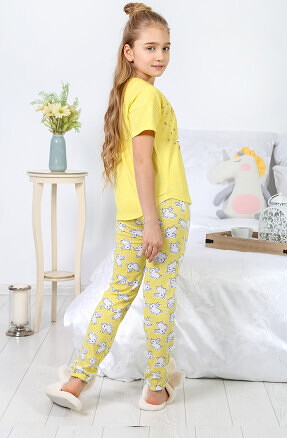Детская пижама для девочек выполнена из дышащего 100% натурального хлопка высочайшего качества (кулирная гладь) - идеальный вариант для сна и отдыха на каждый день. Уютный комплект: мягкая хлопковая футболка с коротким рукавом и комфортные штаны на поясе с резинкой, этот костюм для дома понравится как малышу так и ребенку постарше. Футболка представлена с ярким принтом. Домашний комплект пижамы является идеальным выбором для домашнего отдыха и сна. Благодаря нежному хлопковому трикотажу, он обеспечит ощущение комфорта и нежности на протяжении всей ночи. Благодаря модному и стильному дизайну, этот брючный домашний комплект станет настоящим must-have в гардеробе вашей дочки. Его многогранный стиль и классический покрой делают его универсальным и подходящим для любого случая. Эта превосходная детская пижама изготовлена из качественных материалов, которые обеспечат ей долговечность и износостойкость. Благодаря своему качеству, это не просто одежда, но настоящая инвестиция в комфорт вашего ребенка.Этот потрясающий комплект домашней одежды подарит детям и девочкам невероятные ощущения комфорта и уюта. Отличное качество и нежный внешний вид этого комплекта позволят вашему ребенку чувствовать себя настоящей звездой даже дома. Все мамы и папы будут в восторге от этого набора домашней одежды для девочек! Его стиль, качество и непринужденность делают его идеальным выбором для вашей принцессы. Сделайте ее ночной сон и отдых еще комфортнее с помощью этого набора пижамы с брюками.Будьте самыми яркими этой осенью и создавайте стильные образы холодной зимой