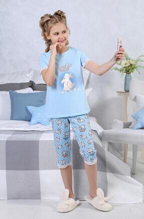арт.517р. ПИЖАМА ДЛЯ ДЕВОЧКИ ЗОНТИКИ-2 (футболка+капри)