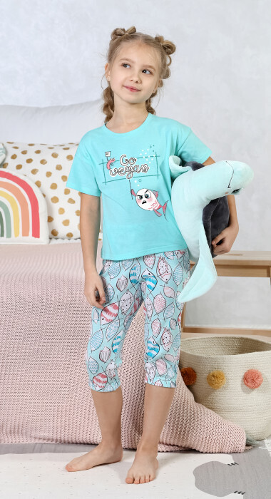 арт. 47С Пижама для девочки Рыбки (футболка+капри)