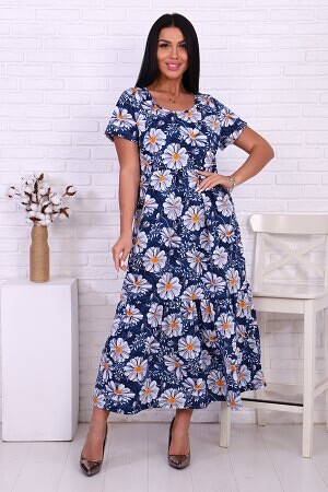 Платье расклешенного силуэта из хлопкового полотна. Вырез горловины круглой формы. Короткий рукав. Длина ниже колена (в пол)