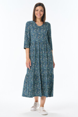 Платье расклешенного силуэта из хлопкового полотна. Вырез горловины V- образной формы. Рукава длиной 3/4. Длина изделия ниже колена. Рост модели 177. Цвет: зелёный. Состав: 100% хлопок